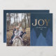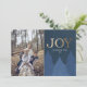 This modern Christmas card is a thoughtful and visually appealing way to spread joy and celebrate the holiday season with your family, friends, and loved ones. Featuring delicate blue pine trees tastefully arranged on the front and back adding a touch of winter magic, and the word "Joy" beautifully showcased with faux gold typography radiating warmth and cheer. Customize with your own family photo and text.
