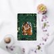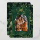 Your family's holiday photo will look special in an arch photo template inside a golden foil frame topped with a bow. Below the photo, there's a template to customize the card with your family name and the year in casual handwriting-style typography. A festive leafy green background adds holiday cheer with the beauty of nature. On the back, there's a template for a special holiday message from your family.