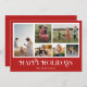 Happy Holidays! Send your warm wishes to friends and family this Christmas season with a customizable photo collage Christmas card. It features modern elegant typography with a red background. Personalize by adding your custom photos, names, year and other details. This minimal Christmas card is available in other colours and cardstock.