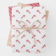 Red Merry Christmas modern wrapping paper, perfect for any gift. Comes with three unique designs. White with red candy canes, elegant white lace, and traditional candy cane stripes.