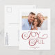Modern Christmas Red Joyful Holiday Photo Postcard