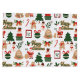 Modern fun festive pattern including Santa, Christmas trees, candy canes, gingerbread men, baubles, gifts and snowmen with "Happy Christmas" greetings thrown in.