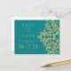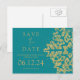 Modern Christmas Save The Date Gold Glitter Teal Announcement Postcard