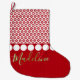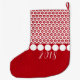 Decorate your mantle with this modern personalized Christmas Stocking. The top of the stocking features a retro snowflake pattern strung with circle ornaments. Just below that is a space for your name in a green and white script. The back has the same snowflake and ornaments pattern, and has a space for the year in white. Click customize to change the fonts, resize or re-position the text or graphics - edit it however you like. Merry Christmas!