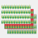 Fun and festive pattern features rows of modern triangle Christmas trees with red ornaments on three background colours
