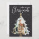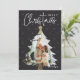 This stylish and modern Christmas card features an elegant modern calligraphy script in white and a Christmas tree frame to add your own photo.