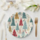 Modern Christmas Tree Green Blue Red Gold Pattern Paper Plate