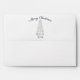 This envelope features three non-traditional colour Christmas ornaments in pastel green, pink, and blue with white stars. The ornaments are stacked and staggered in size to form a Christmas tree shape over a white background. Fill in the template fields, remove any text or click customize to select a typeface colour, size, and style your prefer.