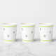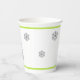 Christmas party paper cups done in a modern theme, with a Christmas tree done in a grey and white chevron pattern with lime green accents and grey snowflakes. Matching holiday party products are available.