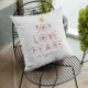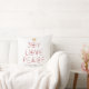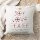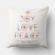 Personalized Elegant Joy Love Peace Christmas Throw Pillow with dark red back. Personalization in dark grey.