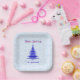 Modern Christmas Tree Personalized Blue Snowflakes Paper Plate