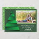 An abstract green Christmas tree, your greeting and names in chic script highlight your favourite family photo. CHANGE the card corner shape, change the fonts, font colours, photo frame colour and even the colour and image on the back. *Add more photos or more details on the back with the CUSTOMIZE further link. Select Matte for heaviest paper and High Definition for best photo quality.