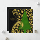 Unique and modern holiday greeting featuring a green Christmas tree with faux gold leaf swirls on black. This two-sided square invite has been turned into a unique way to send holiday greetings when you customize the text on the back side.