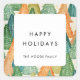 Happy Holidays sticker label. A minimalist and simple multi coloured Christmas tree pattern holiday design.