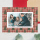 Modern Christmas Trees Red Maroon Photo Plaid Frame Holiday Card