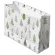 Modern Christmas holiday season Large Gift Bag featuring a pattern of modern, abstract Christmas trees and forest trees in winter snow in sage and olive green colours on white. ASSISTANCE:  For help with design modification or personalization, colour change, resizing, transferring the design to another product or if you would like coordinating items, contact the designer BEFORE ORDERING via the Zazzle Chat MESSAGE tab below or email makeitaboutyoustore@gmail.com.