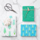 Modern Christmas Trees Turquoise Blue Pattern Trio Wrapping Paper Sheet