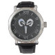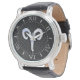 A silver chrome like Aries zodiac symbol on a black snake skin style background. A great urban automotive classy looking birthday fashion watch gift idea.