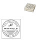 Modern circle monogram return address stamp makes a contemporary impression on all your mailings.