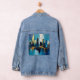 "denim jacket abstract cityscape" "urban fashion streetwear style" "modern skyline wearable art" "creative design metropolitan vibes" "unique clothing fashion forward" "downtown inspired casual wear" "artistic outerwear city vibes" "trendsetting jacket bold design" "contemporary street fashion edge" "stylish statement urban outfit" "graphic city lights jacket" "modern art inspired fashion" "city skyline graphic print" "expressive wearable urban chic" "fashionista downtown style jacket"
