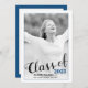 Modern Class of 2023 script classic blue border photo invitation/announcement. It features a photo of the graduate and the text "Class of 2023 in black and blue.