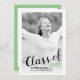 Modern Class of 2023 script  sage green border photo invitation/announcement. It features a photo of the graduate and the text "Class of 2023 in black and sage green.