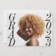 Trendy and chic, this Modern Class of 2024 Photo Graduation Announcement is perfect for celebrating your grad's achievement! The focal point is the horizontal photo with one more photo on the back. The grad card features black and white colour scheme with with the bold "Grad" saying and class of 2024. The design is modern and minimalist. Can be easily adjusted for graduation 2024, college graduation announcement, grad party, senior graduation, high school graduation announcement and more. Part of digital graduation invitations. For matching items, visit the Elegant Black And White Graduation invitations collection.
