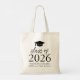 Give the grad a personalized gift they will use! The graduation tote bag features a black graduation cap at the top of the design with "Class of 2025" displayed in bold black lettering. Personalize the black and white graduation tote bag with the graduate's name, school, and graduation year. The design repeats on the back. This design is perfect to use for high school or college graduates.