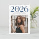 Announce your graduate’s achievement with a sophisticated Class of 2025 graduation announcement! This elegant single-photo design features bold navy "Class of 2025" lettering with subtle black script accents, creating a striking contrast against the white background. The front showcases one standout senior photo, perfect for highlighting your graduate’s accomplishment. The back includes an additional photo and space for a personalized message. Ideal for high school and college graduates, this customizable graduation announcement is a timeless way to celebrate this special milestone. Personalize yours today!
