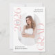 Announce the graduate's big achievement in style with this modern photo graduation announcement. The trendy design features "Class of 2025 Grad" in bold light pink lettering with subtle script accents with a solid white background. The graduate's vertical photo is displayed inside an oblong frame at the centre of the announcement. Personalize the front of the pink graduation announcement with the graduate's name and school. The announcement reverses to display an additional photo displayed inside of a white square frame with your custom text shown below. The stylish graduation announcement is perfect for high school and college graduates.