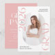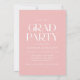 Invite family and friends to celebrate the grad with these stylish photo graduation party invitations! The trendy design features "Class of 2025 Grad" in bold pink lettering with subtle script accents with a solid white background. The graduate's vertical photo is displayed inside an oblong frame at the centre of the invitation. Personalize the front of the pink graduation invitation with the graduate's name and school. The invite reverses to display your graduation party details in white with a pink background. This grad party invite is perfect for high school and college graduates.