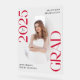 Make a statement at your graduation celebration with this modern Class of 2025 Grad acrylic welcome sign, featuring bold red lettering with subtle script accents on a sleek transparent background. The graduate’s vertical photo is elegantly displayed in an oblong frame at the centre, adding a personal and stylish touch. Customize this acrylic graduation sign with the graduate’s name and school for a unique keepsake. Perfect for high school and college graduations, this sophisticated sign enhances any party décor with its contemporary and professional look.