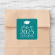 Seal your envelopes and graduation favour bags with these modern graduation stickers! The stickers feature a white graduation cap at the top of the design with "Class of 2025" displayed in bold lettering on a teal background. Personalize the teal graduation sticker with the graduate's name, school, and graduation year. This design is perfect to use for high school or college graduations.