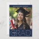 Golden text against black with gold confetti background and modern typography is great for this Graduation announcement. Just add your photo, the year of graduation and the name of the grad.