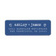 Chic, modern and simple wedding return address label with your names in white modern typography on a classic blue background with a stylish touch of hand drawn hearts. Simply add your names and address. Exclusively designed for you by Happy Dolphin Studio.