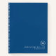 Professional notebook features custom monogram, name and text in white classic font style on a stylish classic blue background.