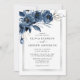 Modern Classic Navy Blue & Silver Floral Wedding Invitation