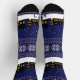 Graphic pattern of ornaments and snow in navy blue and white for Christmas this year.
