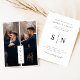 Celebrate your special day with this Modern Classic Photo Monogram Wedding Invitation. Featuring customizable initials in a chic black and white design, this invitation exudes sophistication and timeless elegance. The front showcases two romantic autumn photo of the couple, perfectly capturing the essence of a rustic boho wedding. The minimalist design offers a classy, chic style for modern, outdoor, and winter weddings. Invite your guests to share in your love story with these luxurious, non-traditional wedding invitations that beautifully blend country western charm with a trendy, stylish appeal.