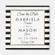 With a classic black and white stripe background, this elegant save the date magnet features an elegant faux gold foil border framing your save the date details set in chic typography. Designed by Thisisnotme©