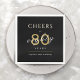 Modern classy cheers to 80 years birthday party napkins feature stylish script and typography in sophisticated gold, black and white, simple and elegant, Great for 80th birthday party or any age birthday party, anniversary party, any other celebration event.