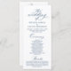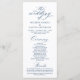 Modern Classy Elegant Wedding Ceremony Program card. It is designed with scroll accent that can be personalised with custom/ personalised text for your bridal party, ceremony details, memorial notes and thank you message, in navy blue.