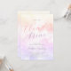 An elegant, whimsical and dreamy bridal shower invitation featuring watercolor clouds in pastel colours of purple and pinkish yellow featuring a calligraphy script saying "she's on cloud nine".