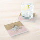 Modern glass coaster features floral bouquet in light / neutral tones with two colour colorblock background