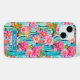 Customize this colorful watercolor iPhone 15 case featuring cacti with beautiful blooms in pinks, oranges and yellows with your name in a modern CAP font in white on teal. It's so modern and trendy!