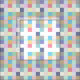 This is a trendy and stylish design featuring multicolored squares arranged in a checkered pattern on a neutral grid background. The squares come in various colors like blue, green, pink, purple, yellow, gray, orange, and rainbow pastel shades, arranged to create a unique and joyful geometric checkerboard design.