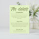 Simple and stylish retro colorful wedding guest info details. With light green pastel background and darker green text layout . All the info are customizable as website, transportation, accommodation . Grab it along with other products from this classy hand made retro wedding suite.