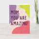 Tell your mom she's an amazing woman with bold text on a modern background of trendy colour blobs in coral pink, lavender purple and bright citron yellow on a textured background of blush pink. All the text is editable for a totally custom mother's day card.