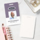 A modern and simple badge that does not distract from the important details. Easy to read from afar. Add a custom logo and company details. Add the employee's name, photo, and professional title. The bar of colour can be modified to match the company's official colours. At the back, add more information such as return address and the employee's ID number. Perfect for oval shaped logos.