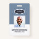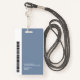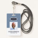 A modern and simple badge that does not distract from the important details. Easy to read from afar. Add a custom logo and company details. Add the employee's name, photo, and professional title. The bar of colour can be modified to match the company's official colours. At the back, add more information such as return address and the employee's ID number. Perfect for oval shaped logos.